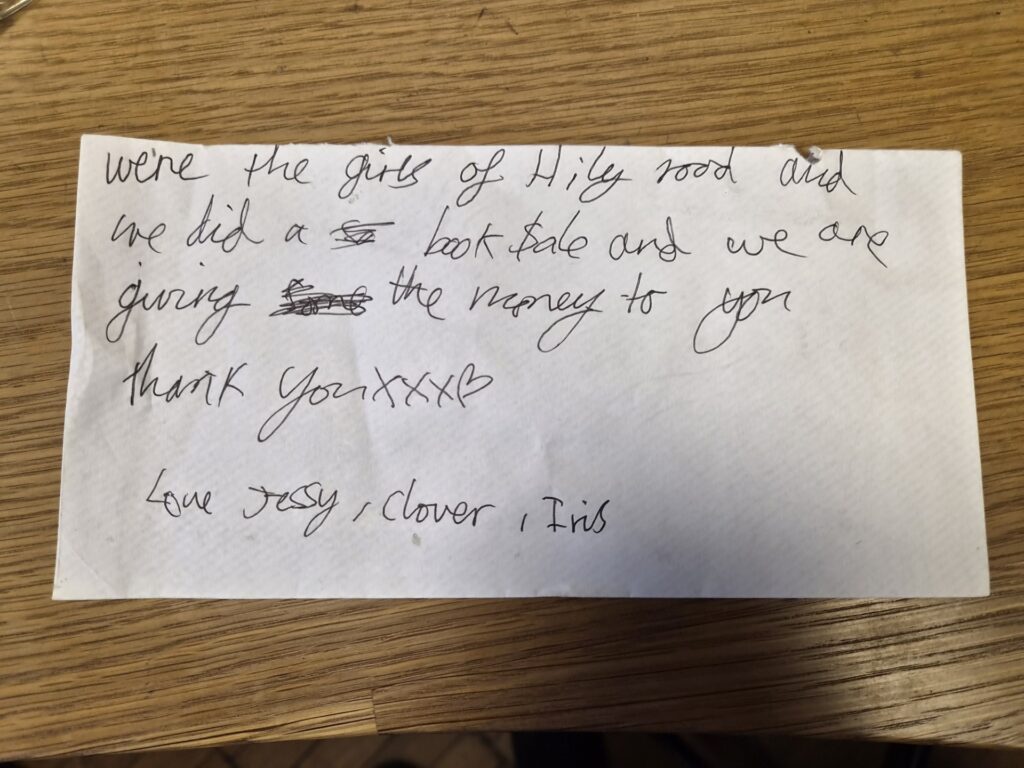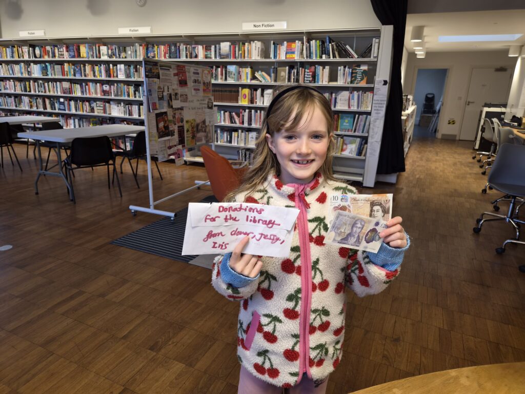 We are so grateful to Clover, Iris and Jessy for holding a book sale on their road on behalf of Kensal Rise Library. Here’s Clover presenting the £30 they raised: